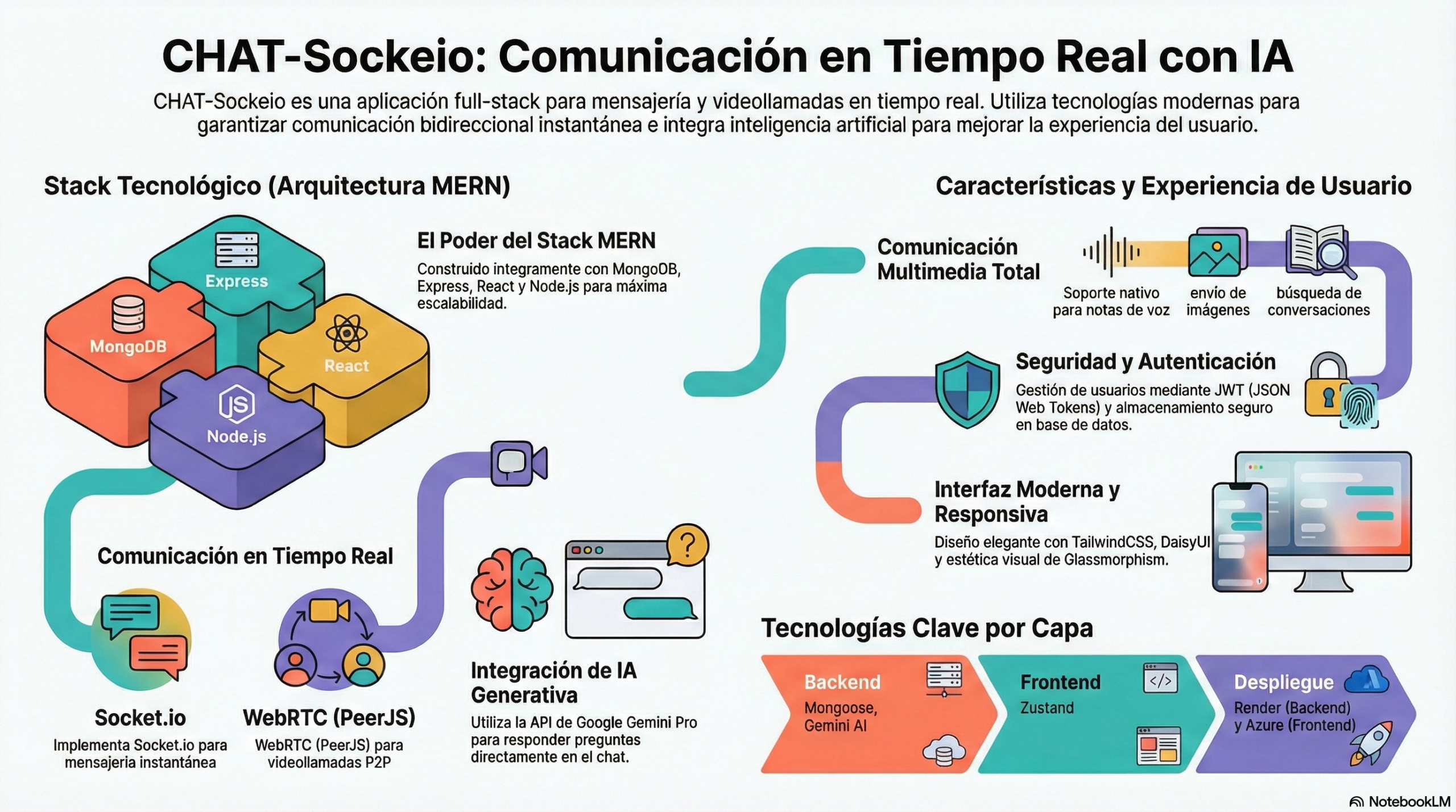 Adquiere la solución definitiva para comunicaciones en tiempo real. Este paquete incluye el despliegue completo de CHAT-Socketio, una arquitectura robusta construida sobre el stack MERN (MongoDB, Express, React, Node.js).